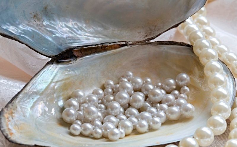 Жемчуг — это продукт морских моллюсков, таких как устрицы и мидии. Он состоит из кальция карбоната и органических веществ, которые образуют жемчужину внутри раковины моллюска. Цвет жемчуга может варьироваться от белого и розового до черного и фиолетового. Самый ценный считается натуральный жемчуг с блеском и оттенками, которые зависят от места его обитания и условий образования.